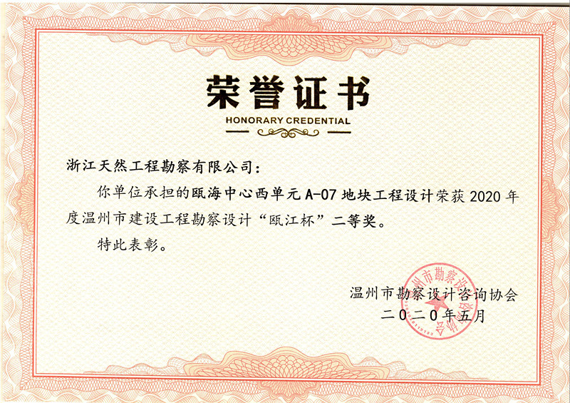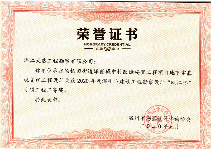 (2020)“甌江杯”二等獎(專項工程)...