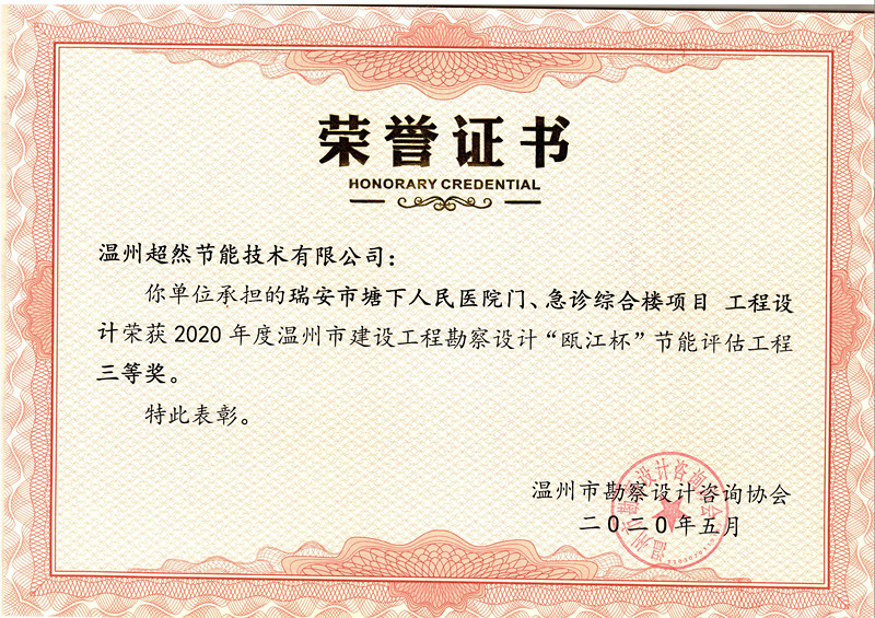 (2020)“甌江杯”三等獎(專項工程)...